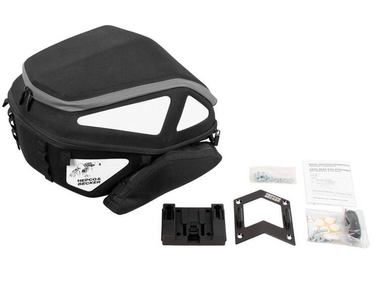 W zestawie zestaw montażowy Basic do montażu na bagażnikach Hepco&Becker Sportrack lub Smartrack