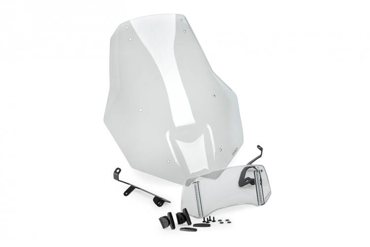 Przedłużona w górnej części, zapewnia doskonałą ochronę przed wiatrem nawet przy długich podróżach. Dodatkowo posiada zamontowany regulowany w 3 pozycjach (plus 3 kąty nachylenia w każdej pozycji) deflektor, który jeszcze dodatkowo poprawia aerodynamikę i zmniejsza turbulencje. Otwory pod deflektor są już fabrycznie nawiercone.