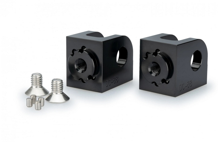 omplet mocowań podnóżków na lewą i prawą stronę kierowcy. Wersja do zastosowania z dystansem relokującym 20 mm. Dystans i same podnóżki należy dokupić osobno.