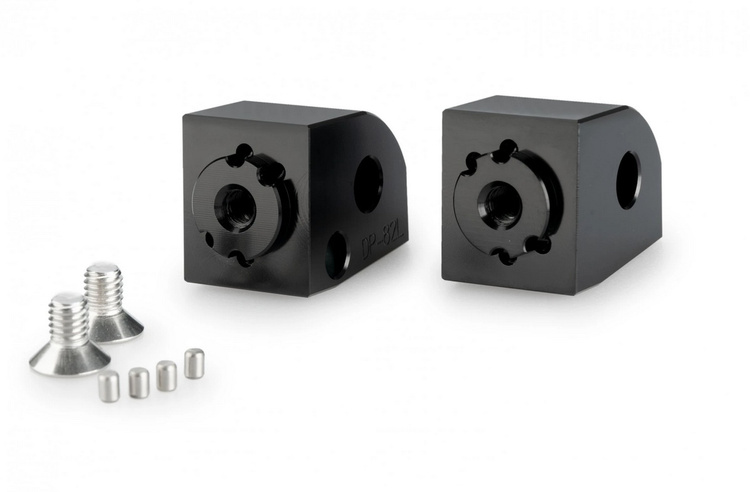 Komplet mocowań podnóżków na lewą i prawą stronę pasażera. Wersja do zastosowania z dystansem relokującym 20 mm lub 40 mm. Dystans i same podnóżki należy dokupić osobno.
