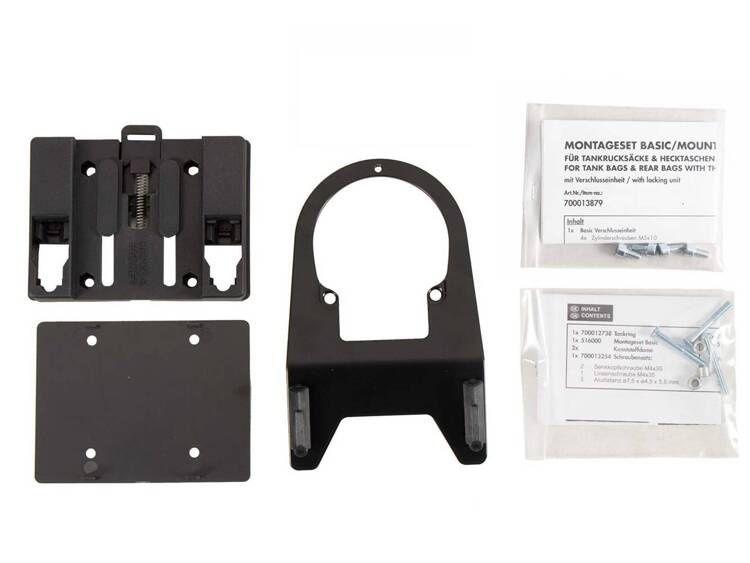Zakres dostawy obejmuje pierścień zbiornika BASIC, a także zapięcie do tankbagów, które można indywidualnie przykręcić do tankbaga, w zależności od kształtu zbiornika i kąta nachylenia kierownicy.