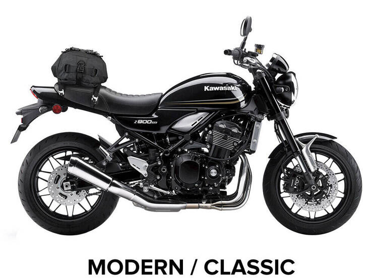 For bikes with an external frame / rack 2 x Subframe Loops can be attached to the frame, the other 2 loops can be combined together to form a ‘double loop’ strap this can be secured under the rear pillion seat.