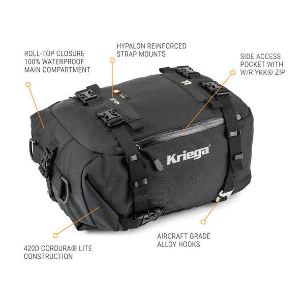 The US-20 Drypack provides 20 litres of storage capacity which is Ideal for a long day on the bike or an over-nighter when you need to carry a mid-layer jacket, waterproofs or a change of clothes.