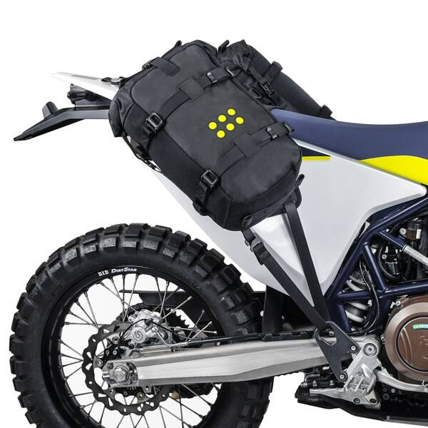 The OS-BASE is an 'over the seat harness' for mounting OS-6, OS-12, or OS-18 ADVENTURE PACKS as soft panniers, with no need for metal frames. This system provides a super-tough, lightweight carrying solution, with only slight bodywork alterations needed. The fitting hardware gives the flexibility to mount a one, two, or three-pack set-up, depending on your ride. The set-length straps make mounting quick and easy, and the custom shape provides a tight, secure fit with plenty of distance from the exhaust and fuel filler. It takes less than a minute to mount and just seconds to remove it.