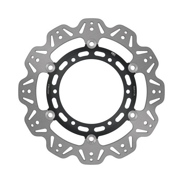 Tarcze Sport Bike Disc z serii VEE marki EBC Brakes, o czarnym centrum, są ręcznie budowane i poddawane szczegółowej kontroli tolerancji. Ich ultra lekka, ale jednocześnie wytrzymała konstrukcja sprawia, że są idealnym ulepszeniem OEM. Zastosowanie opatentowanego systemu przycisków o kwadratowym napędzie zapobiega luzowaniu i wibracjom, co jest typowe dla tańszych, okrągłych nitów lub przycisków.