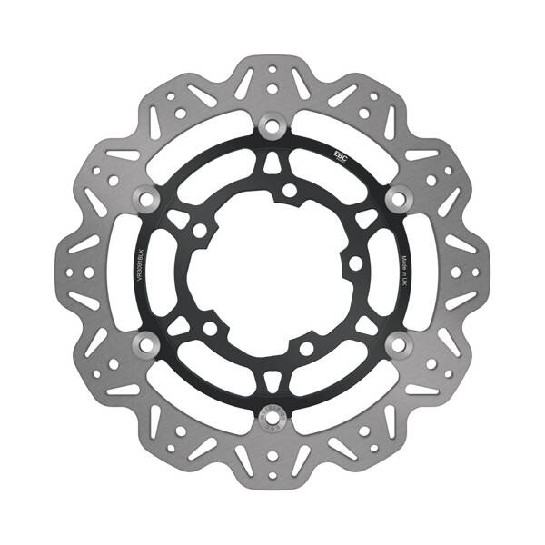 Tarcze Sport Bike Disc z serii VEE marki EBC Brakes, o czarnym centrum, są ręcznie budowane i poddawane szczegółowej kontroli tolerancji. Ich ultra lekka, ale jednocześnie wytrzymała konstrukcja sprawia, że są idealnym ulepszeniem OEM. Zastosowanie opatentowanego systemu przycisków o kwadratowym napędzie zapobiega luzowaniu i wibracjom, co jest typowe dla tańszych, okrągłych nitów lub przycisków.