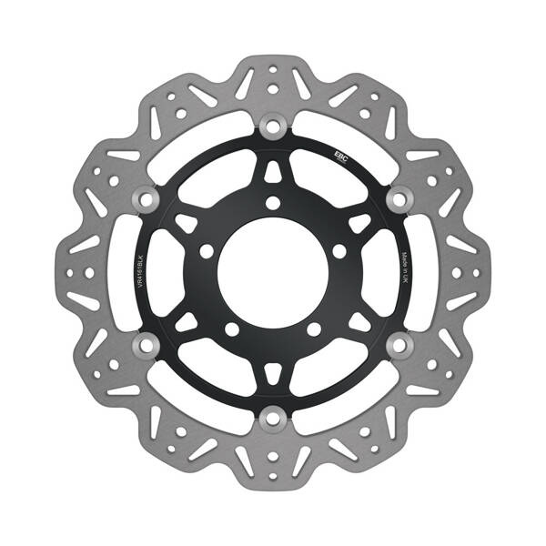 Tarcze Sport Bike Disc z serii VEE marki EBC Brakes, o czarnym centrum, są ręcznie budowane i poddawane szczegółowej kontroli tolerancji. Ich ultra lekka, ale jednocześnie wytrzymała konstrukcja sprawia, że są idealnym ulepszeniem OEM. Zastosowanie opatentowanego systemu przycisków o kwadratowym napędzie zapobiega luzowaniu i wibracjom, co jest typowe dla tańszych, okrągłych nitów lub przycisków.