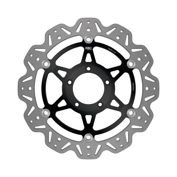 Tarcze Sport Bike Disc z serii VEE marki EBC Brakes, o czarnym centrum, są ręcznie budowane i poddawane szczegółowej kontroli tolerancji. Ich ultra lekka, ale jednocześnie wytrzymała konstrukcja sprawia, że są idealnym ulepszeniem OEM. Zastosowanie opatentowanego systemu przycisków o kwadratowym napędzie zapobiega luzowaniu i wibracjom, co jest typowe dla tańszych, okrągłych nitów lub przycisków.
