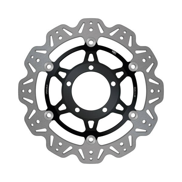 Tarcze Sport Bike Disc z serii VEE marki EBC Brakes, o czarnym centrum, są ręcznie budowane i poddawane szczegółowej kontroli tolerancji. Ich ultra lekka, ale jednocześnie wytrzymała konstrukcja sprawia, że są idealnym ulepszeniem OEM. Zastosowanie opatentowanego systemu przycisków o kwadratowym napędzie zapobiega luzowaniu i wibracjom, co jest typowe dla tańszych, okrągłych nitów lub przycisków.