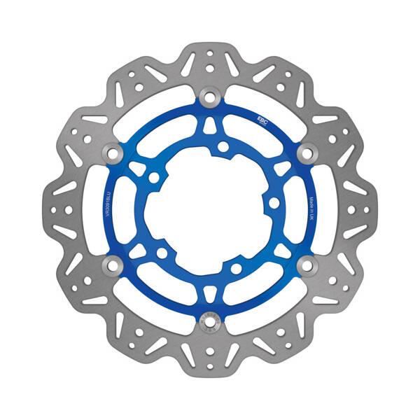 Tarcza hamulcowa EBC VR BLU w kolorze niebieskim to produkt z serii VEE, cechujący się pływającą konstrukcją oraz niską wagą. System SD odpowiada za połączenie tarczy z centrum mocującym za pomocą 6 nitów, co sprawia, że są one lekkie, a zarazem wytrzymałe. Dostępne są w 5 różnych kolorach, z czarnym środkiem jako standardem. Tarcze VEE zostały wykonane z wysokogatunkowej niemieckiej stali nierdzewnej, a ich tylna część doskonale współgra z przednią.