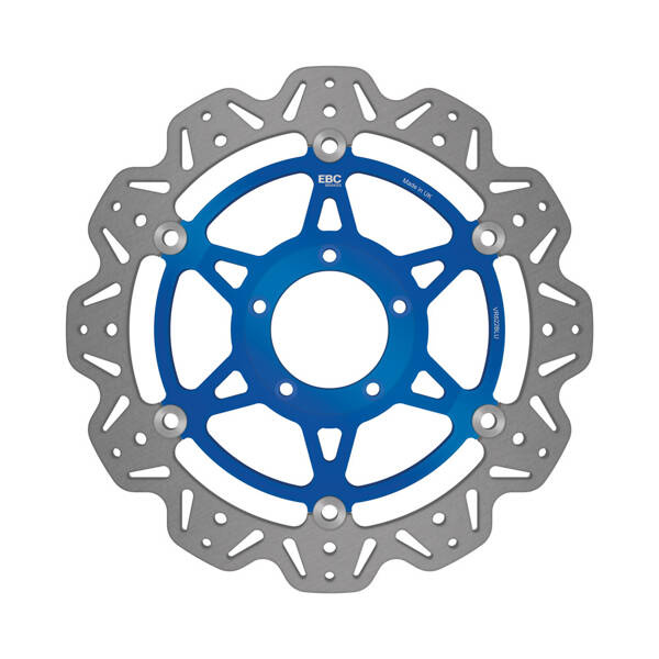 Tarcza hamulcowa EBC VR BLU w kolorze niebieskim to produkt z serii VEE, cechujący się pływającą konstrukcją oraz niską wagą. System SD odpowiada za połączenie tarczy z centrum mocującym za pomocą 6 nitów, co sprawia, że są one lekkie, a zarazem wytrzymałe. Dostępne są w 5 różnych kolorach, z czarnym środkiem jako standardem. Tarcze VEE zostały wykonane z wysokogatunkowej niemieckiej stali nierdzewnej, a ich tylna część doskonale współgra z przednią.