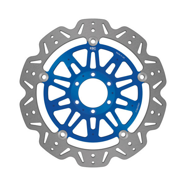 Tarcza hamulcowa EBC VR BLU w kolorze niebieskim to produkt z serii VEE, cechujący się pływającą konstrukcją oraz niską wagą. System SD odpowiada za połączenie tarczy z centrum mocującym za pomocą 6 nitów, co sprawia, że są one lekkie, a zarazem wytrzymałe. Dostępne są w 5 różnych kolorach, z czarnym środkiem jako standardem. Tarcze VEE zostały wykonane z wysokogatunkowej niemieckiej stali nierdzewnej, a ich tylna część doskonale współgra z przednią.