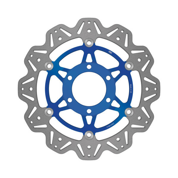 Tarcza hamulcowa EBC VR BLU w kolorze niebieskim to produkt z serii VEE, cechujący się pływającą konstrukcją oraz niską wagą. System SD odpowiada za połączenie tarczy z centrum mocującym za pomocą 6 nitów, co sprawia, że są one lekkie, a zarazem wytrzymałe. Dostępne są w 5 różnych kolorach, z czarnym środkiem jako standardem. Tarcze VEE zostały wykonane z wysokogatunkowej niemieckiej stali nierdzewnej, a ich tylna część doskonale współgra z przednią.