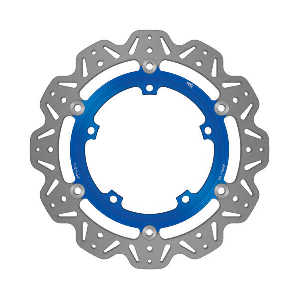 Tarcza hamulcowa EBC VR BLU w kolorze niebieskim to produkt z serii VEE, cechujący się pływającą konstrukcją oraz niską wagą. System SD odpowiada za połączenie tarczy z centrum mocującym za pomocą 6 nitów, co sprawia, że są one lekkie, a zarazem wytrzymałe. Dostępne są w 5 różnych kolorach, z czarnym środkiem jako standardem. Tarcze VEE zostały wykonane z wysokogatunkowej niemieckiej stali nierdzewnej, a ich tylna część doskonale współgra z przednią.