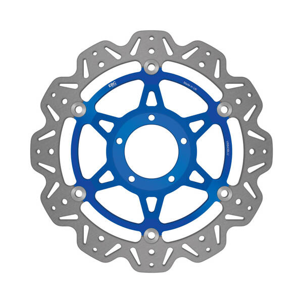 Tarcza hamulcowa EBC VR BLU w kolorze niebieskim to produkt z serii VEE, cechujący się pływającą konstrukcją oraz niską wagą. System SD odpowiada za połączenie tarczy z centrum mocującym za pomocą 6 nitów, co sprawia, że są one lekkie, a zarazem wytrzymałe. Dostępne są w 5 różnych kolorach, z czarnym środkiem jako standardem. Tarcze VEE zostały wykonane z wysokogatunkowej niemieckiej stali nierdzewnej, a ich tylna część doskonale współgra z przednią.