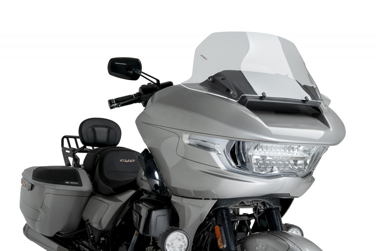 Dodatkowe przedłużenie w turystycznej szybie PUIG zapewnia doskonałą ochronę przed wiatrem nawet przy długich podróżach. Szyba zaprojektowana w wirtualnym tunelu aerodynamicznym. Wysoka jakość optyczna (akryl). Mocowana w miejsce fabrycznej, za pomocą fabrycznych śrub. Posiada niemiecki atest TUV. Zastosowanie HARLEY DAVIDSON ROAD GLIDE FLTRX 2024