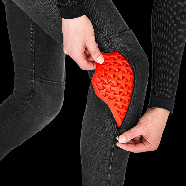Jeansy SHIMA RIDGE LADY to najbezpieczniejsze damskie spodnie motocyklowe z kolekcji SHIMA, zapewniające certyfikowaną ochronę na poziomie AAA. Idealnie sprawdzą się zarówno w miejskich warunkach, jak i podczas dłuższych podróży. Wykonane z wytrzymałego materiału CORDURA® oraz wzbogacone o technologię DuoLayer Protection™ , chronią newralgiczne miejsca narażone na uderzenia. Zestaw zawiera certyfikowane protektory AirForce na biodrach oraz GFLEXX kolanach, które można łatwo dopasować dzięki systemowi regulacji rzepem. Jeansy SHIMA RIDGE LADY charakteryzują się również wzmocnionymi podwójnymi i potrójnymi szwami, co zapewnia im wyjątkową trwałość. Dzięki zawartości 50% bawełny oferują doskonałą oddychalność, a elastyczny materiał w połączeniu z kobiecym krojem Lady Fit gwarantuje najwyższy poziom komfortu. Harmonijki nad kolanami zapewniają swobodę ruchu, a dodatkowe funkcje, takie jak pętelka łącząca z kurtką czy zawieszka D-LOOP, zwiększają ich funkcjonalność. Dostępne w kolorach BLACK i BLUE, w rozmiarach 24 - 34 w wersji klasycznej oraz 26 - 30 w wersji przedłużanej.