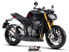 Nakładające się na siebie dwa tłumiki Twin CR-T nadają angielskiemu nakedowi charakterystyczny wygląd. Ten unikalny układ podkreśla agresywną konstrukcję motocykla, zamieniając Triumph Speed Triple 1200 RS w prawdziwe arcydzieło.
