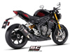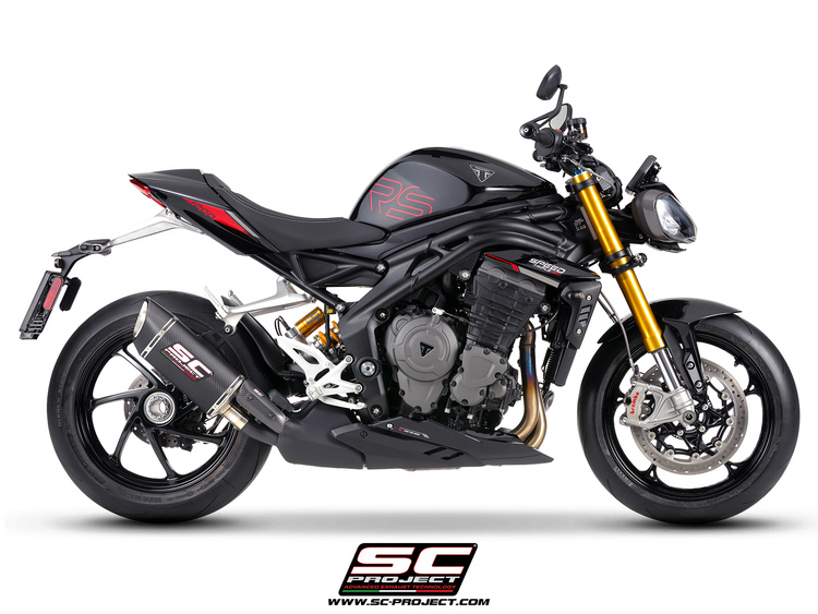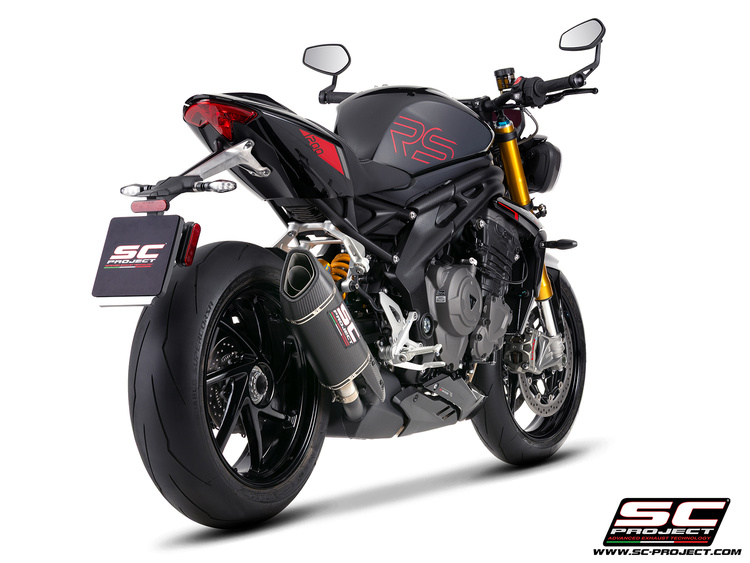 Nasz tłumik SC1-R GT został zaprojektowany i wykonany tak, aby pozwolić Ci poczuć pełnię wrażeń wyścigowych SC-Project, dzięki głębokiej i udoskonalonej symfonii trzycylindrowego silnika nowego Speed Triple 1200 RS, w pełnej zgodności z normami Euro 5+.