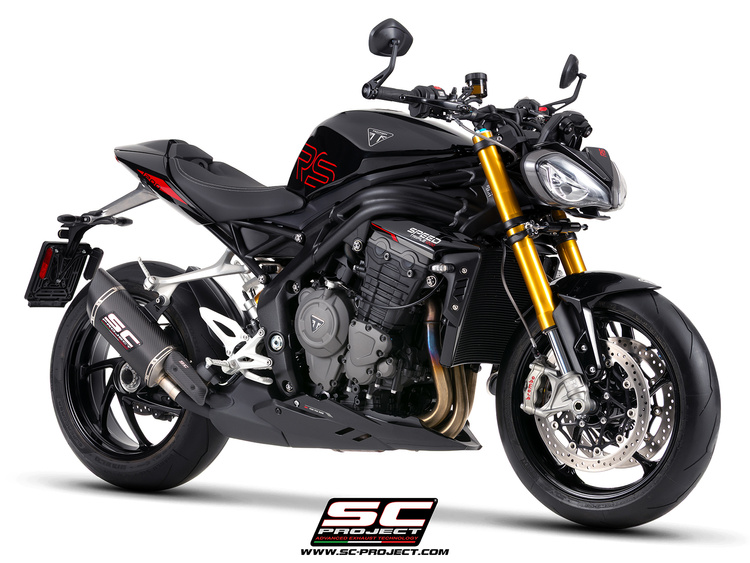Aby jeszcze bardziej udoskonalić estetykę Speed Triple, zestaw zawiera osłonę termiczną z włókna węglowego o wykończeniu najwyższej jakości.