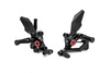 Pozycje podnóżków, hamulca i dźwigni zmiany biegów można dowolnie regulować, dostosowując je do indywidualnych potrzeb. Podnóżki są ustawiane za pomocą kombinacji regulacji przesuwnej i obrotowej w jednym punkcie, co sprawia, że ich wybór jest niezwykle szybki i łatwy (pięć pozycji poprzez przesuwanie i cztery poprzez obracanie). Hamulec i dźwignia zmiany biegów są zamontowane na podwójnych łożyskach kulkowych, co zapewnia bezluzową pracę dźwigni, a podnóżki można regulować w razie potrzeby za pomocą mimośrodów. Aluminiowe osłony pięt po obu stronach dopełniają zakres dostawy. System jest wyposażony w składane podnóżki.