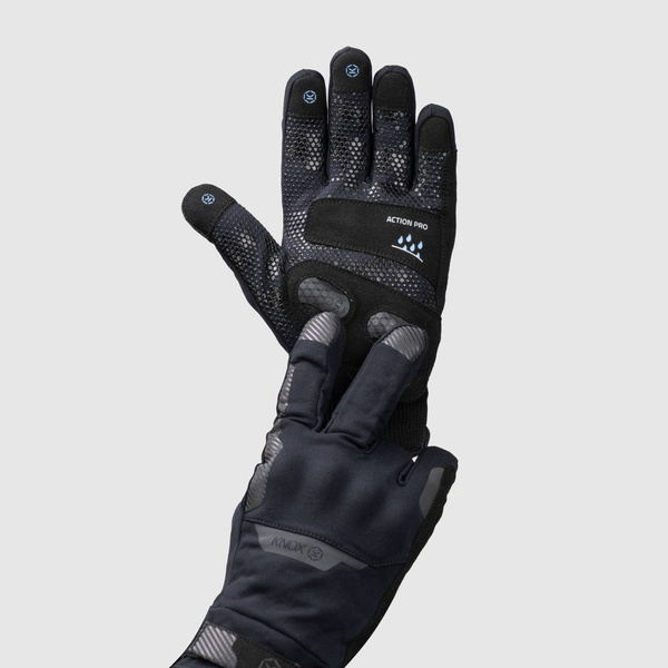 Rękawice Action Pro Waterproof mają miękki, elastyczny krój z krótkim mankietem, co zapewnia wyjątkowy komfort i łatwość użytkowania. Lekkie, tekstylne tworzywo nielateksowe gwarantuje lepszą oddychalność i elastyczność.