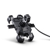 Zaawansowany uchwyt motocyklowy MH EVO WC, najwyższy model z oferty, przeznaczony do współpracy z najnowszymi modelami telefonów z ładowaniem indukcyjnym, wyposażony w niezawodny system czteropunktowego mocowania FOUR HOOKS SECURITY SYSTEM ™. Uchwyt posiada również port USB do ładowania urządzeń, które nie są kompatybilne z ładowaniem bezprzewodowym.