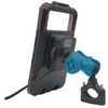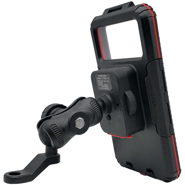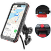 Uchwyt z zaciskiem na kierownicę, z ładowaniem USB-C, USB, oraz ładowanie indukcyjne, wyposażony w wodoodporne etui z ramką przewodzącą dotyk do telefonów.
