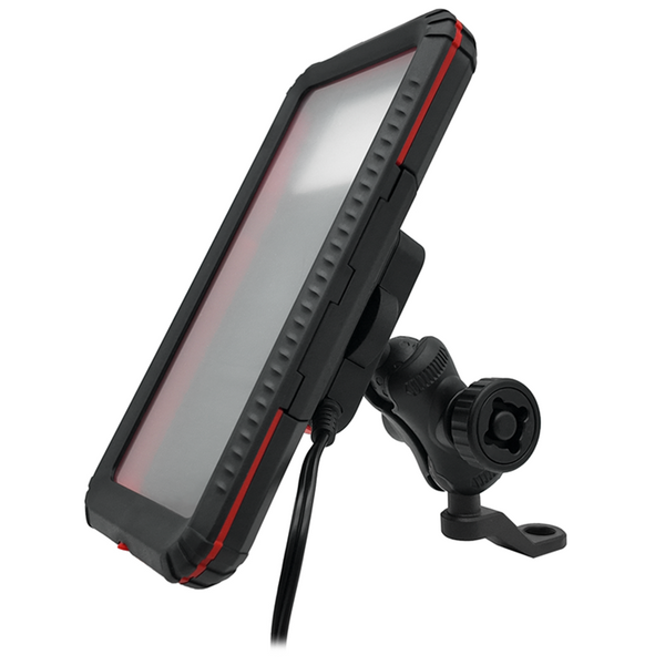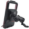 Uchwyt jest prosty w swojej konstrukcji i solidnie wykonany. Pochłania drgania telefonu podczas jazdy. Jego atutem jest etui, które bardzo dobrze zabezpieczy Twój telefon nawet podczas Ekstremalnej jazdy. Jest zamykane szczelnie i ochroni przed zachlapaniami deszczu, kurzu, pyłu lub błota. Etui można wyciągnąć z uchwytu, jeżeli potrzebujemy wziąć telefon do ręki.