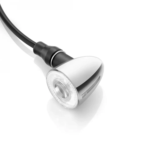 KIERUNKOWSKAZY i PRZEDNIE ŚWIATŁO POZYCYJNE. IRIDE L wykonane z litego aluminium i wykorzystują najnowszą generację technologii LED SMD o wysokiej intensywności światła, zgodnej z europejskimi normami homologacji. Spełniają dwie funkcje: KIERUNKOWSKAZÓW i przednich świateł pozycyjnych. Innowacyjna, jeszcze bardziej kompaktowa konstrukcja podkreśla ich charakterystyczny, klasyczny styl.