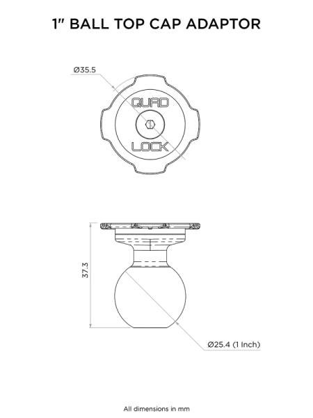 Adapter Quad Lock® Ball Top Cap jest kompatybilny ze wszystkimi ramionami 1" i mogą być używane wszędzie tam, gdzie występują ramiona 1".