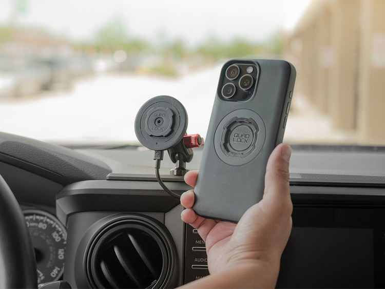 Ulepsz swój uchwyt, dodając jedną z głowic Quad Lock MAG™, aby jeszcze łatwiej zabezpieczyć telefon. Wystarczy ustawić urządzenie w odpowiedniej pozycji, a magnesy zajmą się resztą – bez konieczności skręcania.