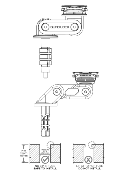 Podstawa montowana w sztycę główki ramy Quad Lock jest przeznaczona do motocykli, w których wymagany jest montaż w rurze sztycy widelca.