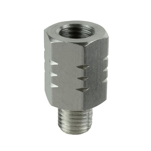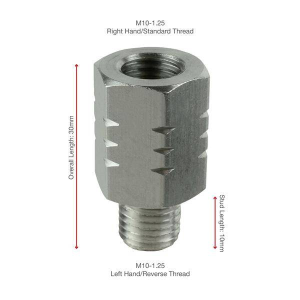 Adapter odwrotnego gwintu RAM M10-1.25 (RAM-M10125-RTA) podnosi punkt połączenia lusterka w motocyklach o 20 mm. Adapter z odwróconym gwintem zwykle instaluje się w prawym punkcie połączenia lusterka kierowcy. Ma to na celu zapewnienie, że jeśli lusterko zostanie uderzone podczas jazdy, podłączone akcesorium zostanie poluzowane, a nie zmieni kierunku jazdy pojazdu.