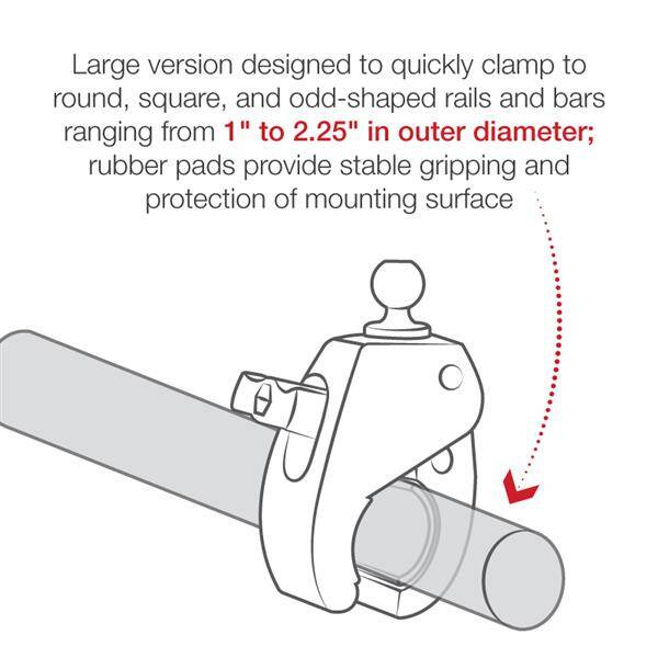 RAM Tough-Claw to idealna podstawa montażowa do montażu i demontażu bez użycia narzędzi na okrągłych, kwadratowych i nieparzystych szynach i prętach. Większą wersję RAM Tough-Claw można szybko zamocować na szynach o średnicy zewnętrznej od 1" do 2,2" i idealnie nadaje się do montażu telefonów, tabletów, kamer sportowych, uchwytów na wędki i wielu innych w szerokiej gamie zastosowań. Doskonale nadający się do montażu na jarzmie samolotu, kierownicy rowerów i motocykli, a nawet na relingach kajakowych i pałąkach, RAM Tough-Claw wkrótce stanie się kolejnym niezbędnym elementem pamięci RAM w Twojej kolekcji.