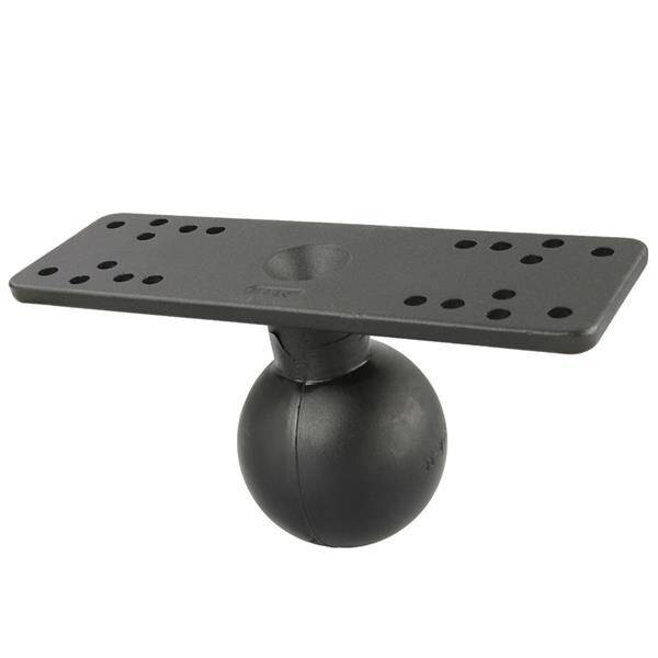 RAM-D-115BU, uniwersalna płyta montażowa, składa się z gumowej kuli o średnicy 2,25 cala, połączonej pod kątem prostym z płaską prostokątną płytą o wymiarach 6,25 cala x 2 cale. Płyta zawiera różne kombinacje wstępnie nawierconych otworów, które będą pasować do wiele urządzeń elektronicznych.