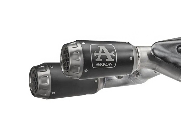 Konstrukcja tłumika w stylu Arrow jest bardzo dopracowana i oprócz zapewnienia maksymalnej wydajności, pozwala na utrzymanie hałasu w granicach określonych przepisami wyścigowymi.