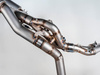Kompensator 3-drożny, uzyskany w wyniku pełnej obróbki CNC w 5 osiach, łączy kolektory tylnego rzędu z kolektorami przedniego rzędu, optymalizując przepływ spalin i zwiększając sprawność silnika.