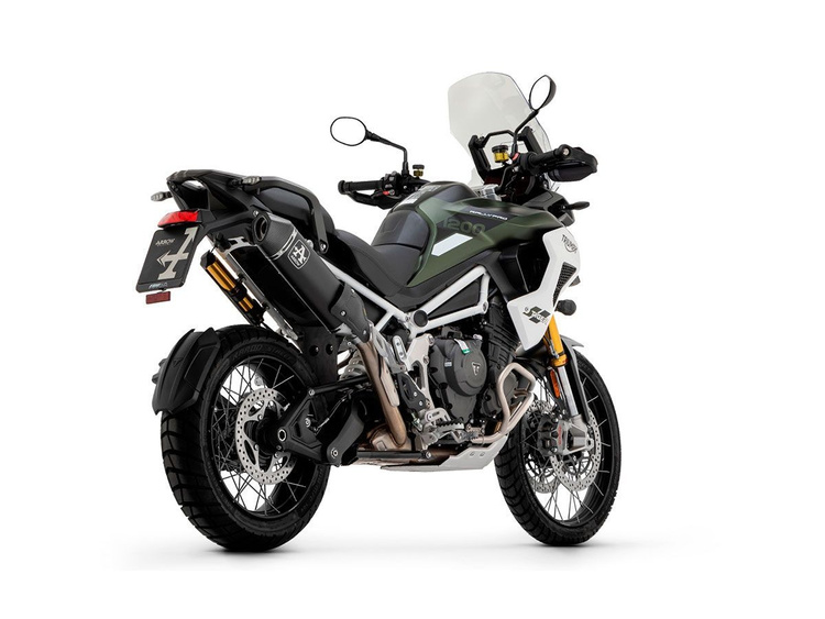 Ten tłumik jest wyposażony w osłonę z włókna węglowego i nie pasuje do oryginalnych bocznych poduszek powietrznych marki Triumph.