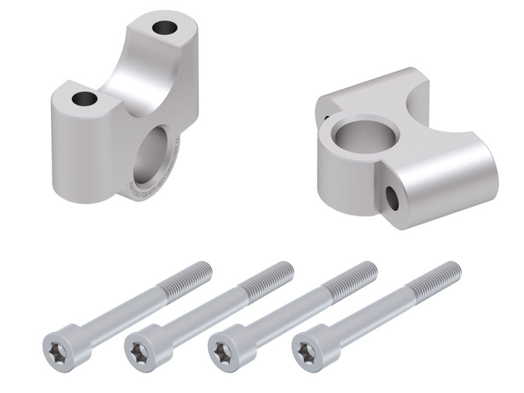 - different versions depending on the model: spacers or sleeves under the handlebar clamps; handlebar risers under the handlebar for use with the original upper clamp; handlebar risers with lower and upper clamp