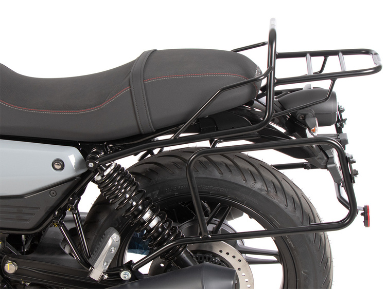 HEPCO&BECKERs standard side carriers are firmly bolted to the motorcycle. All normal hard lugagge cases from Hepco & Becker fit this carrier. The cases are fastened to the carrier by means of a quick release fastener. For this purpose, an aluminum adapter is required which is normally included within the delivery of the case. (Item number: 700114) This aluminum adapter is screwed to the rear right and left of the carrier and offer the holder for the luggage lock.