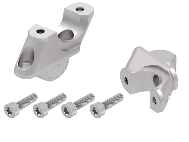 • different versions depending on the model: spacers or sleeves under the handlebar clamps; handlebar risers under the handlebar for use with the original upper clamp; handlebar risers with lower and upper clamp