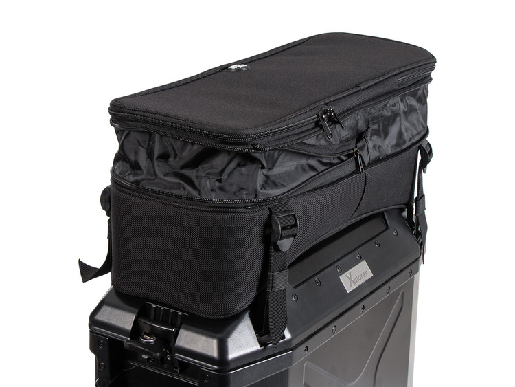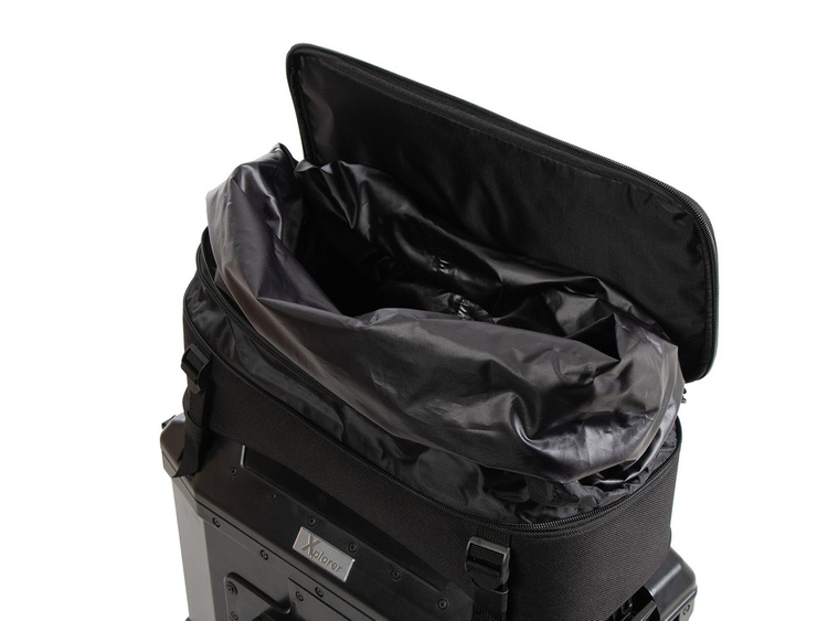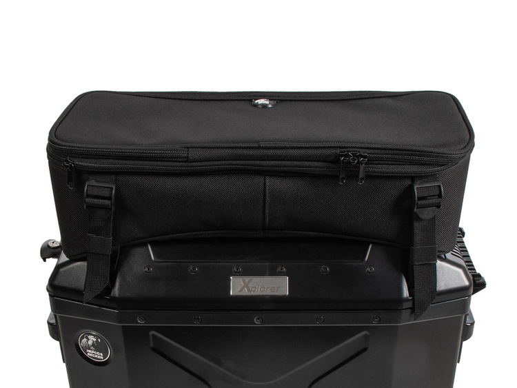 If you want something more. The top pocket with extension zipper is attached to the Xplorer lid with 4 straps. The eyelets for the straps are already integrated into the lid. The bag has a waterproof inner bag.