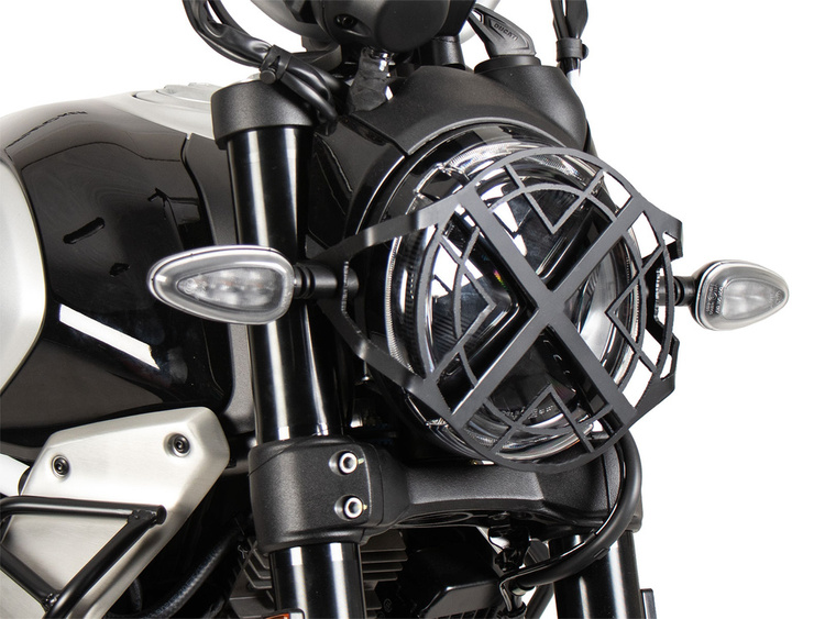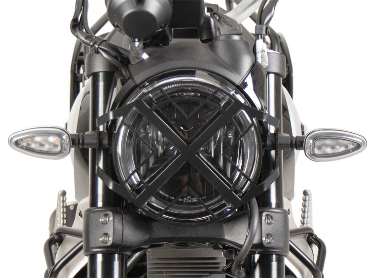 Our Hepco&Becker headlight grill keeps the light protected and also adds an great off-road look.
