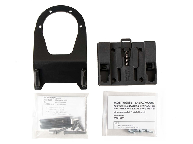 The scope of delivery includes a BASIC tank ring, as well as the fastener for tankbags, which can be individually screwed to the tank bag, depending on the shape of the tank and the angle of the handlebars.