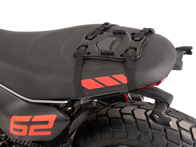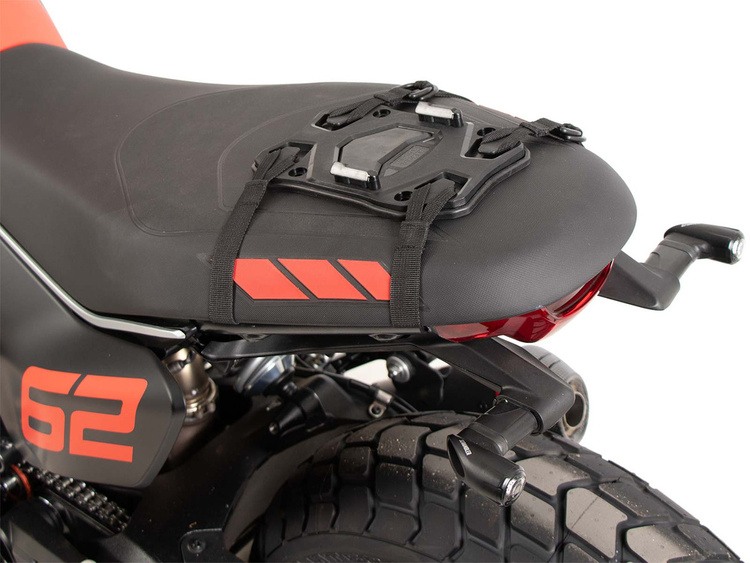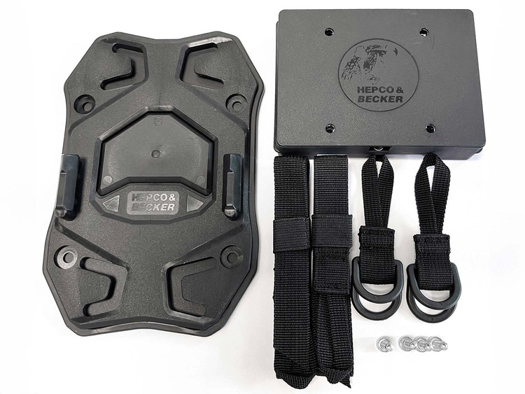 The Seatpad Basic is the ideal solution for attaching rear bags to a pillion seat. It offers a quick, uncomplicated and yet safe way to transport luggage on the motorcycle. Thanks to the rubber plate and the universal strap set, the Seatpad Basic can be secured to almost any seat without slipping. The light and discreet design of our tried and tested HEPCO&BECKER Basic fastener enables rear bags to be attached in a flash. Not suitable for off-road use.