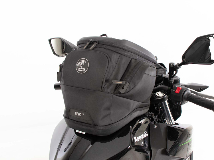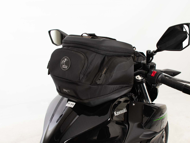 • the Hepco&Becker tank bag is simply put on and locks audibly on the tank ring thanks to a sophisticated mechanism