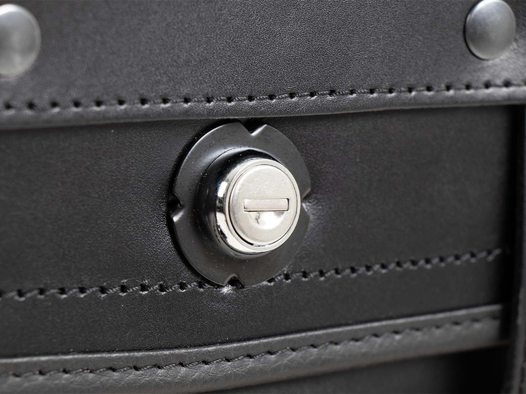 This new, spacious leather case has a state appearance, which is also reflected in the name. As stable as a “treasure chest”, even a helmet can easily be stowed away during breaks and is also stowed away to prevent theft.