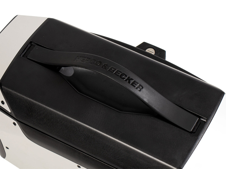 Even when you're not sitting behind your handlebars, the Xcore side case offers you advantages. As usual, you can rely on our theft-proof design: The case can be locked to the C-Bow holder from Hepco&Becker. So your luggage can stay on your bike during your break. When you arrive at your destination, extend the sturdy carrying handle with logo lettering and check in elegantly to your accommodation.