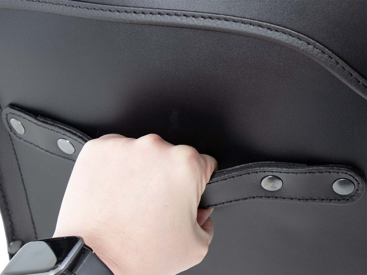 The basis is a 3.5 mm thick cowhide leather, which is reinforced by a plastic reinforcement and the foam lining. This makes the bag very dimensionally stable and a robust companion on every tour. Thanks to the practical lid lock, a volume of 30 liters can be safely stored.